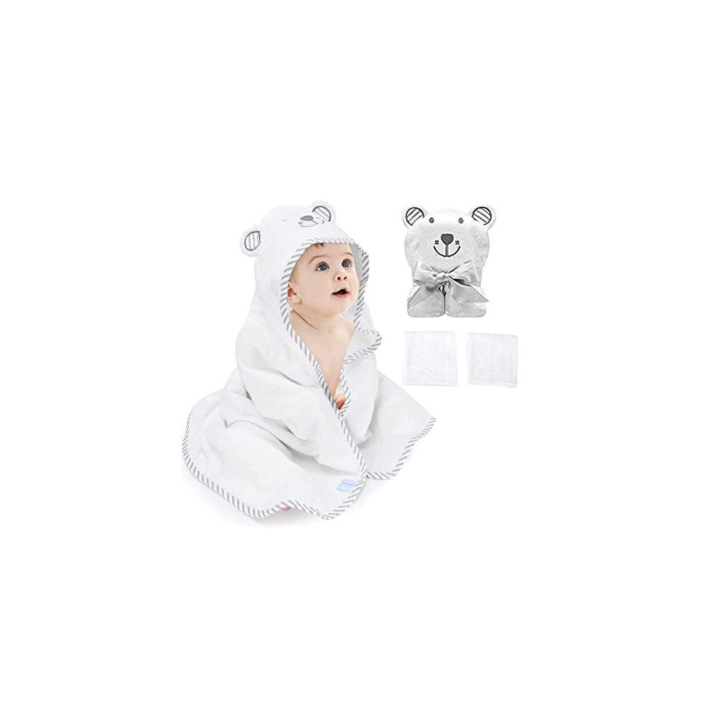 (White) Baby Hooded Towel, Baby Bath Towels with Hood,Unique Animal Design Ultra Soft Absorbent and Non-Balling Cotton Baby Bath Towel, for Baby Boy a