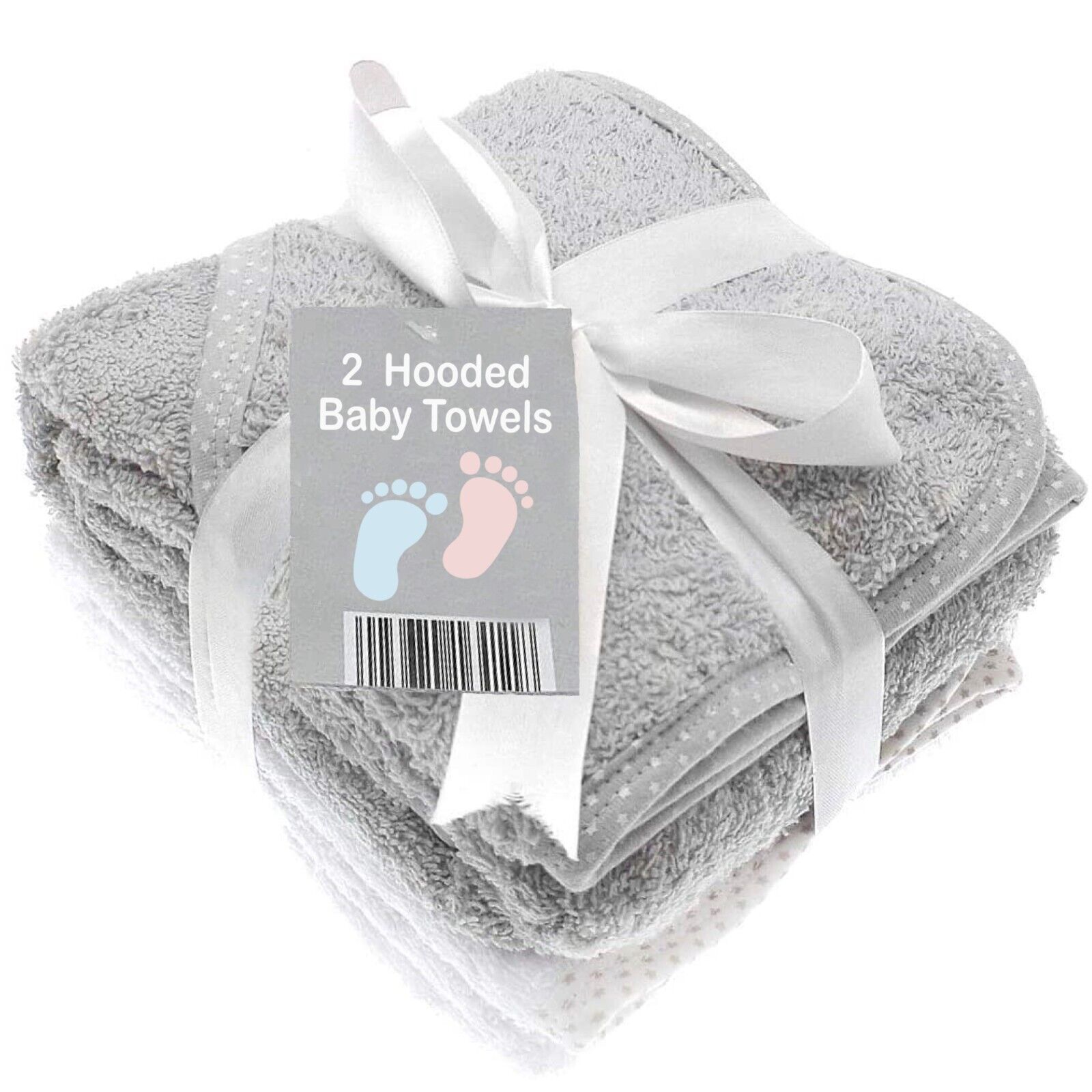 2 x Baby Towels Hooded Bath Wrap Grey & White 100% Cotton Baby Shower Gifts