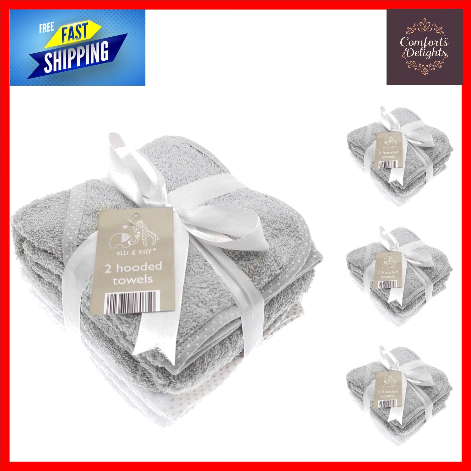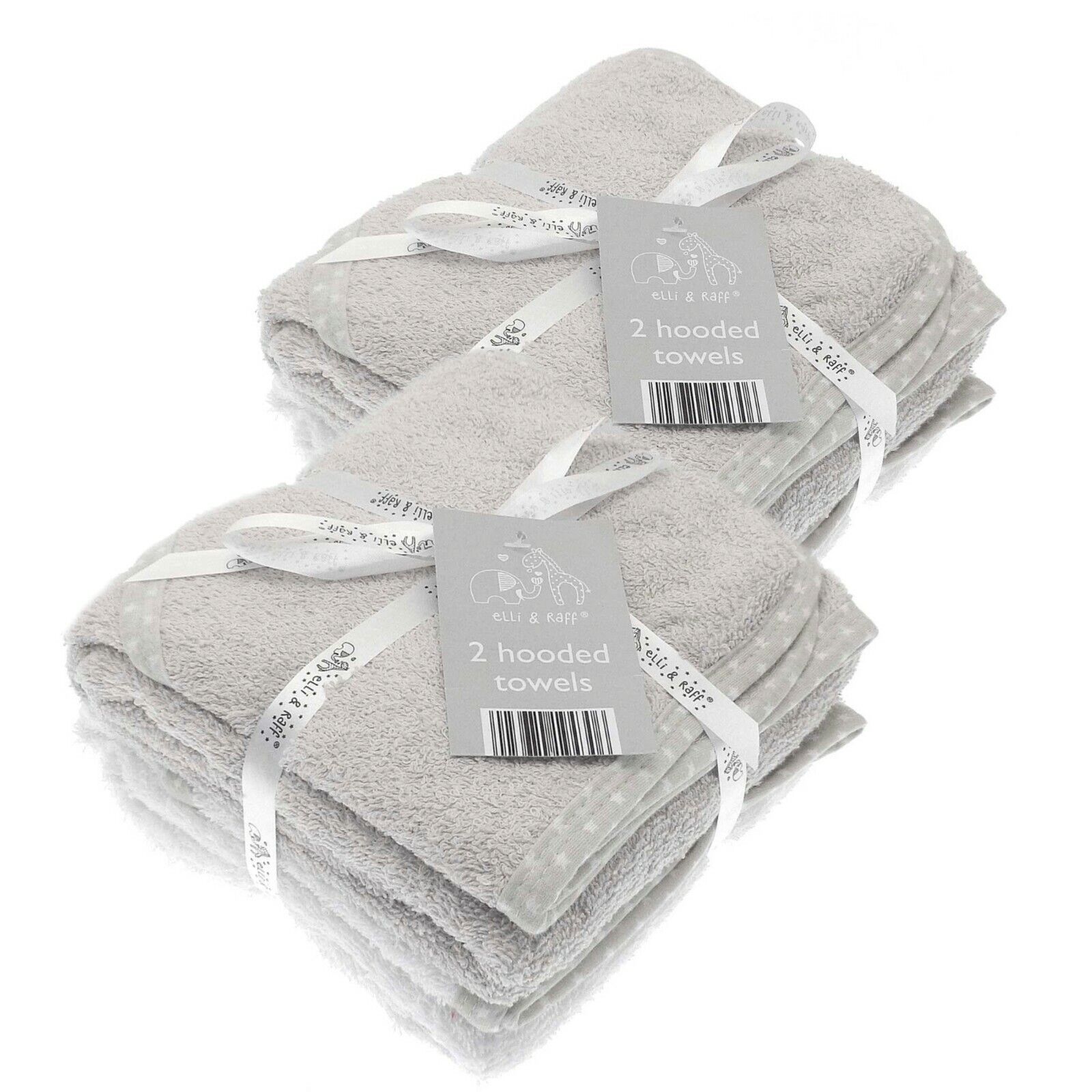 Elli and Raff 2 Pack Hooded Baby Towels Grey and White