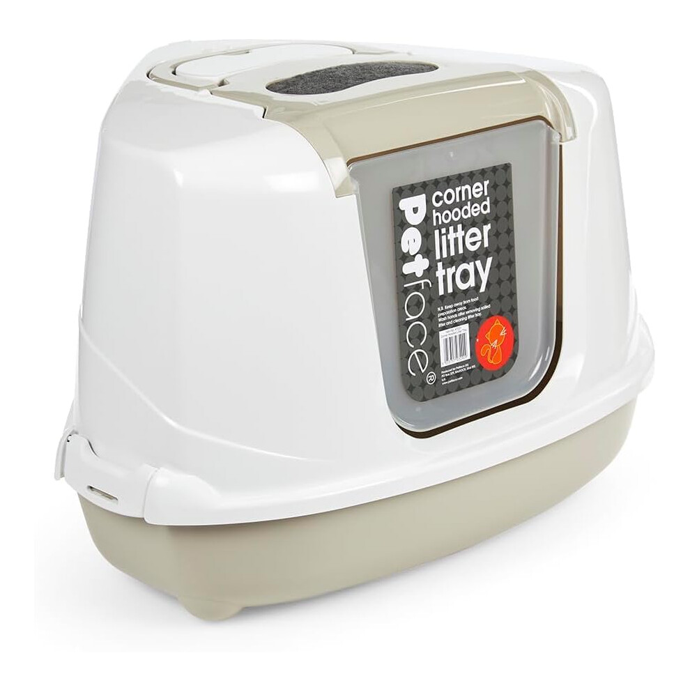 Petface Hooded Corner Cat Litter Tray, Pet Privacy, Reduce Odours & Keep Your Home Fresh, Scoop Provided, 56L x 38W x 46H cm