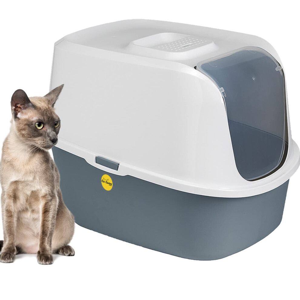 CAT CENTRE Litter Tray Hooded Dark Grey Toilet Charcoal Filter Extra Deep Anti-Spillage Kittens Cats Enclosed Box Pan Loo Filter Flap Door Detachable Rim Rounded Corners Safe Durable