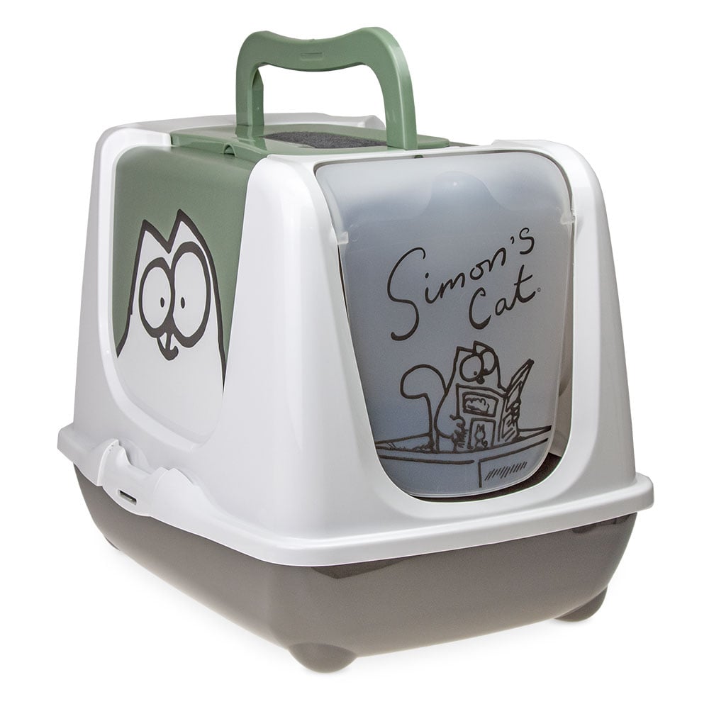 Simon's Cat Hooded Filter Litter Tray - Grey/green/white