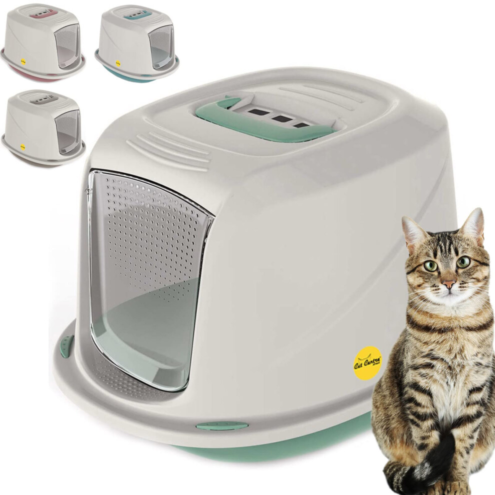 CAT CENTRE Jumbo Green Cat Hooded Litter Tray High Sided Rim Big Extra