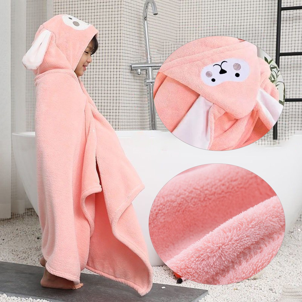 (Pink Bunny, One size) Hooded Towel Kids Soft Comfortable Absorbent Bathrobe Blanket Hooded Beach Towel For Bath Swim New