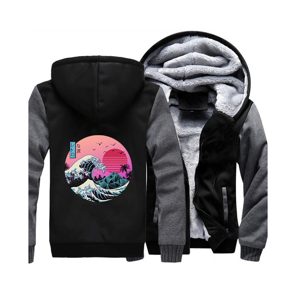 The Great Retro Wave Japan Anime Vaporwave Kanagawa Harajuku Winter Jacket Men Fleece Thicken Hoodies Camo Hooded Jackets Coats
