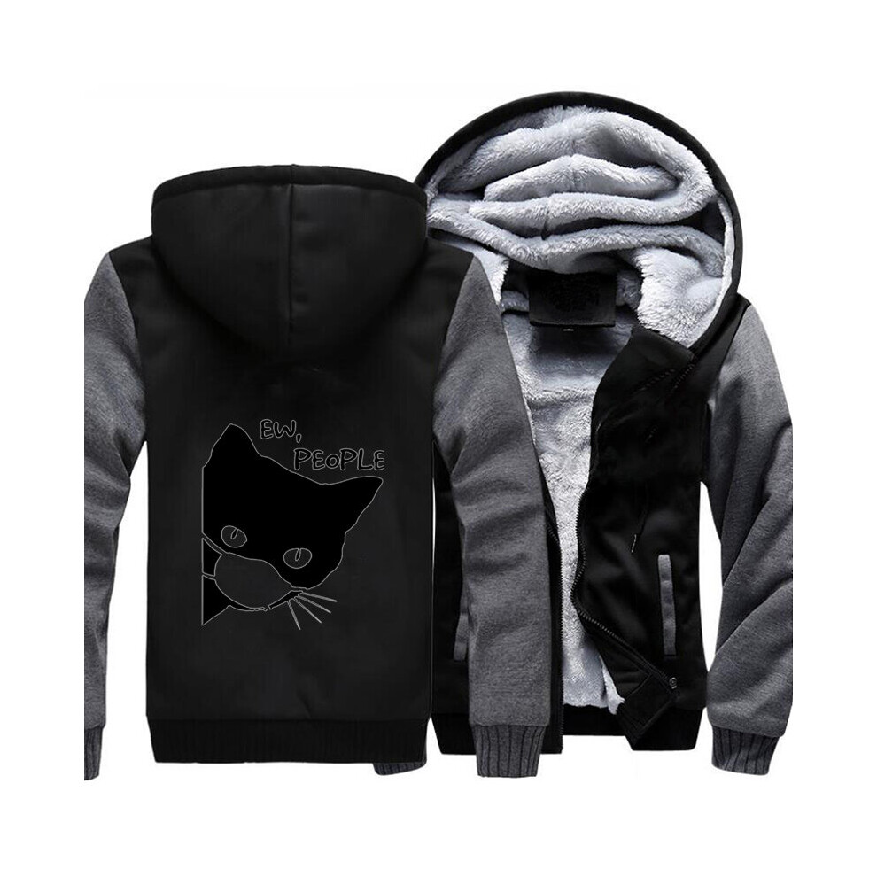 Ew People Cat Jacket Streetwear Men Winter Thicken Jackets Zip Up Hoodie Warm Fleece Hooded Camo Hoodies Sweatshirts Coats