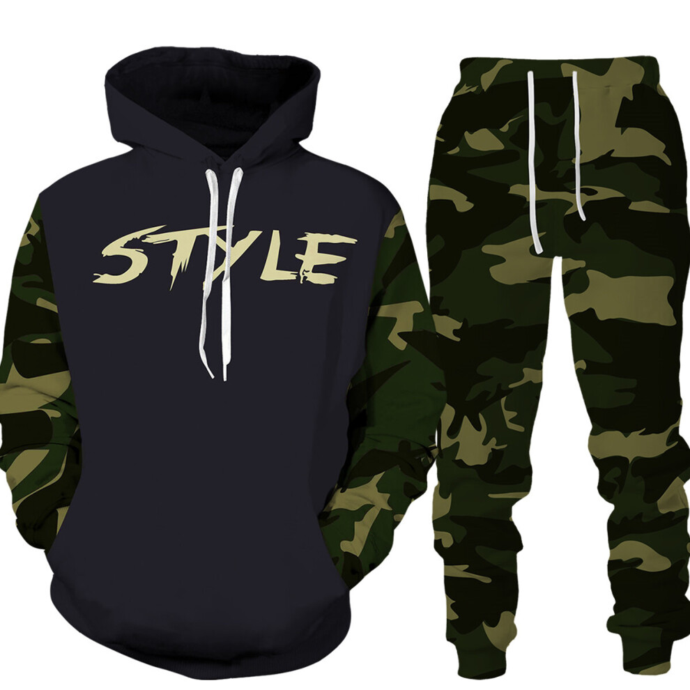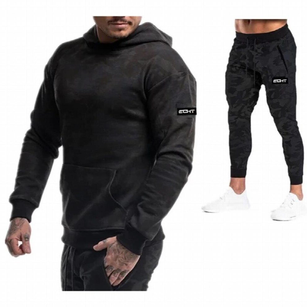Camo Men Tracksuit Autumn Male Fitness Camouflage Hooded Sweatshirts Jacket + Pants Suit Spring Casual Hoodies Set 2 Pieces