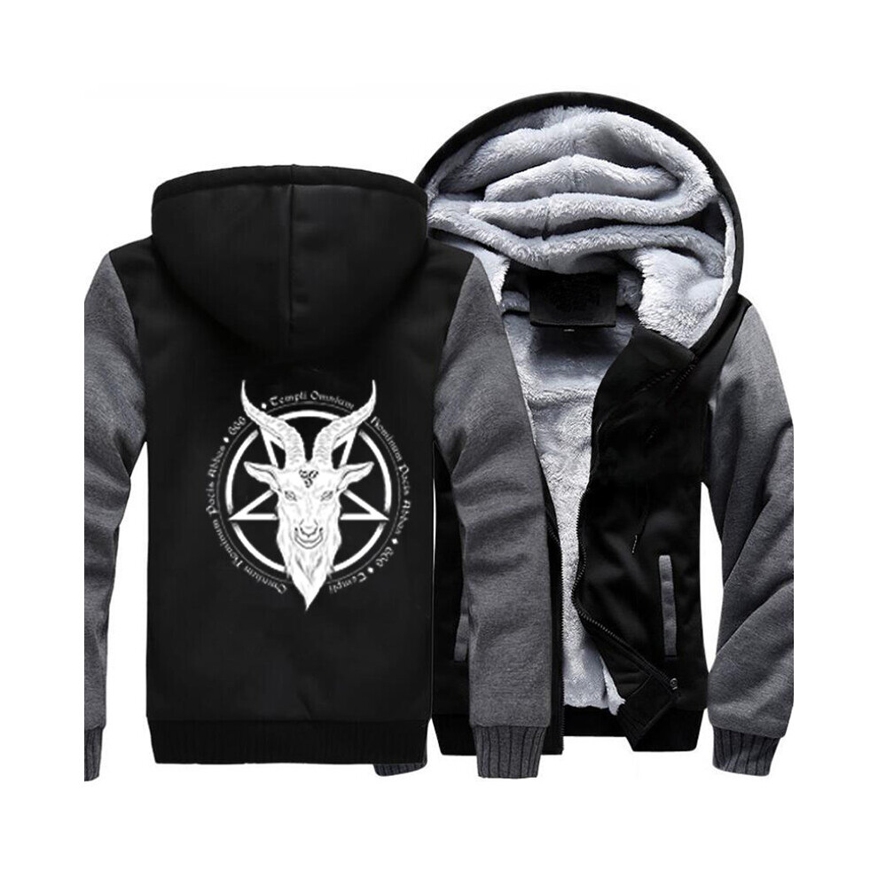 Satan Goat Head Jacket Streetwear Men Winter Thicken Jackets Zip Up Hoodie Fleece Hooded Camo Hoodies Sweatshirts Coats Clothing