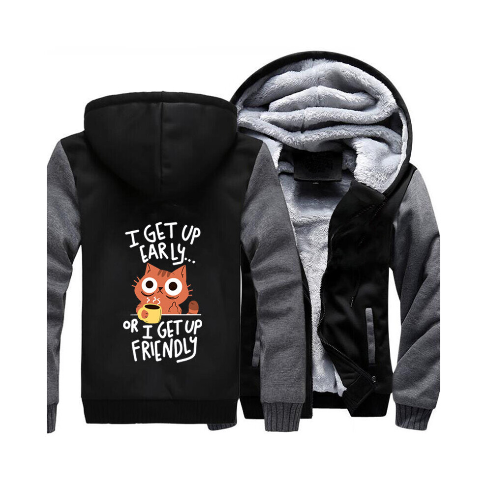 Morning Cat I Get Up Early Or I Get Up Friendly Funny Winter Jacket Men Fleece Thicken Hoodies Camo Warm Hooded Jackets Coats