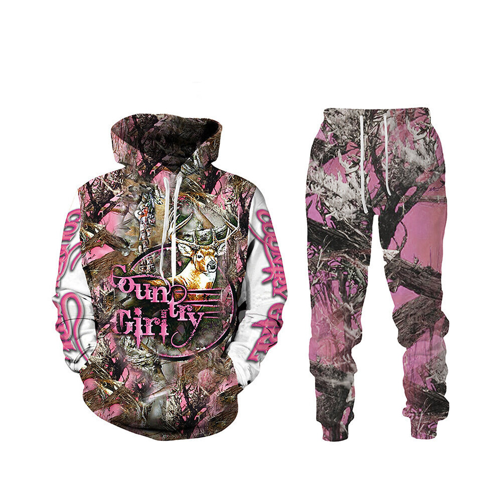 Deer 3D Printed Hoodies Casual Men/Women Camo Pullover Sweatshirt+Pants Suit Couple Harajuku Tracksuit Sets