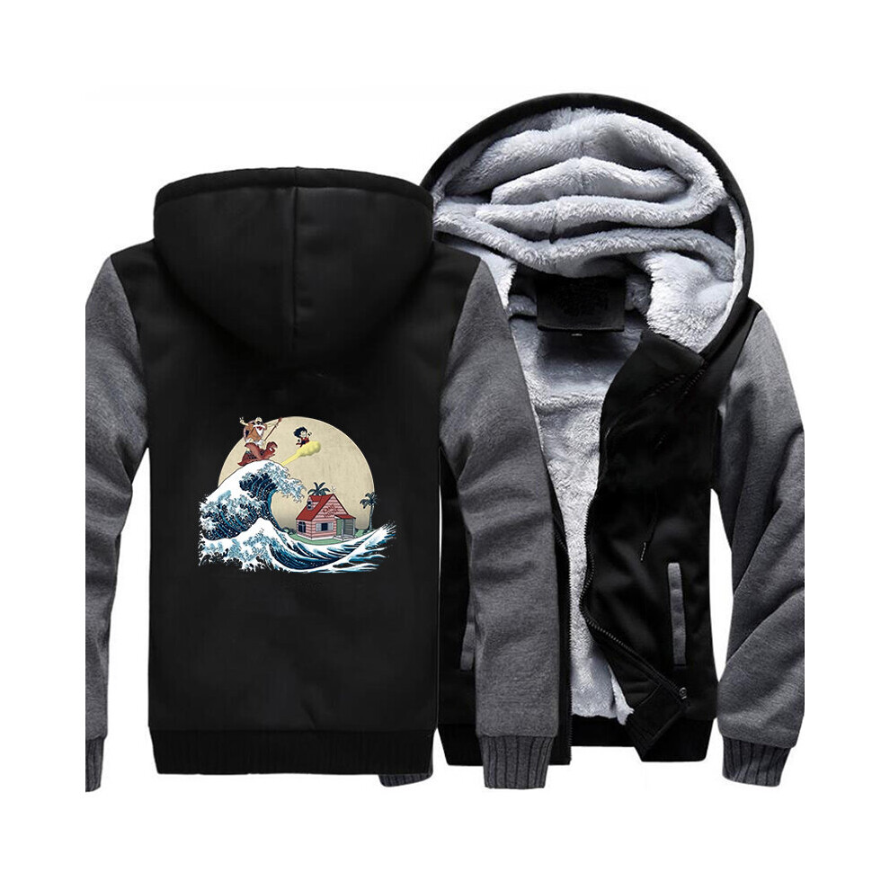 Master Roshi Japanese Anime Manga Kame Sennin Harajuku The Great Wave Winter Jacket Men Hoodies Camo Warm Thicken Jackets Coats