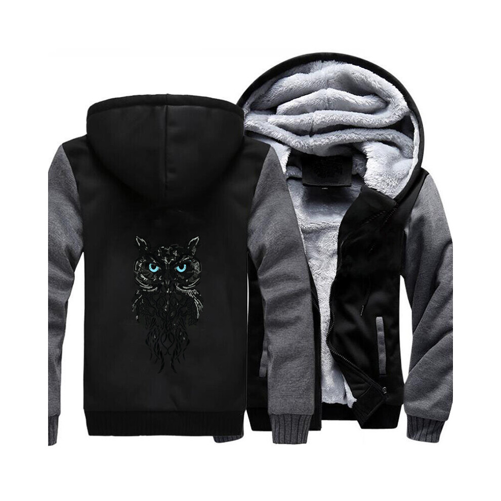 Eagle Owl Jacket Streetwear Men Winter Thicken Jackets Zip Up Hoodie Warm Fleece Hooded Camo Hoodies Sweatshirts Coat Clothing