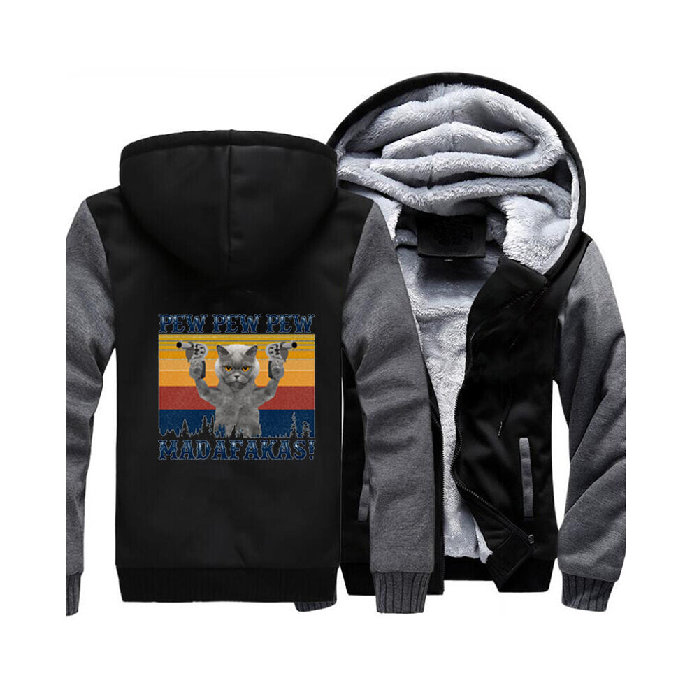 Pew PewPew Madafakas Cat Funny Jacket Streetwear Men Winter Thicken Jackets Hooded Camo Hoodies Zip Up Hoodie Warm Fleece Coats