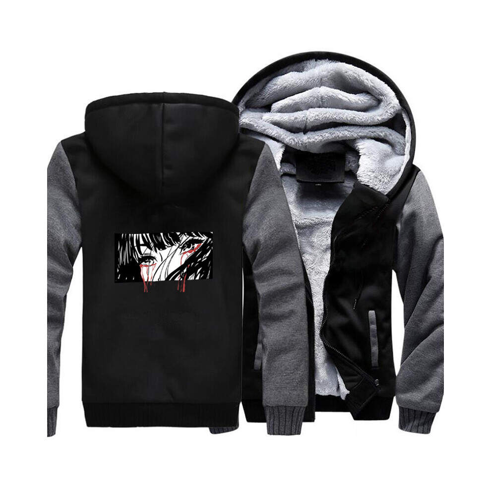 Japanese Anime Eye Harajuku Jackets For Men Winter Camo Fleece Jacket Zipper Hoodie Thicken Hoodies Sweatshirts Coats Clothing