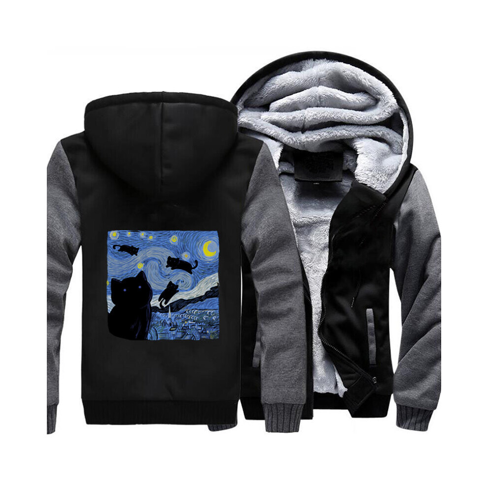 The Starry Cat Jacket Streetwear Men Winter Thicken Jackets Hooded Camo Hoodies Zip Up Hoodie Warm Fleece Sweatshirts Clothing