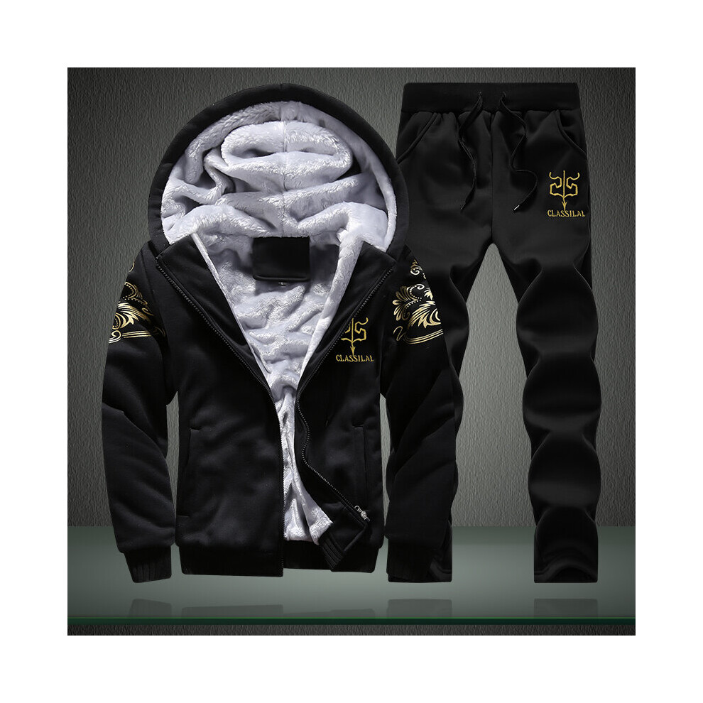 Mens Camo Tracksuit Winter Warm Set Fleece Hoodies for Men Thicken Hoodie + Pants Mens Suits Male Clothing Streetwear