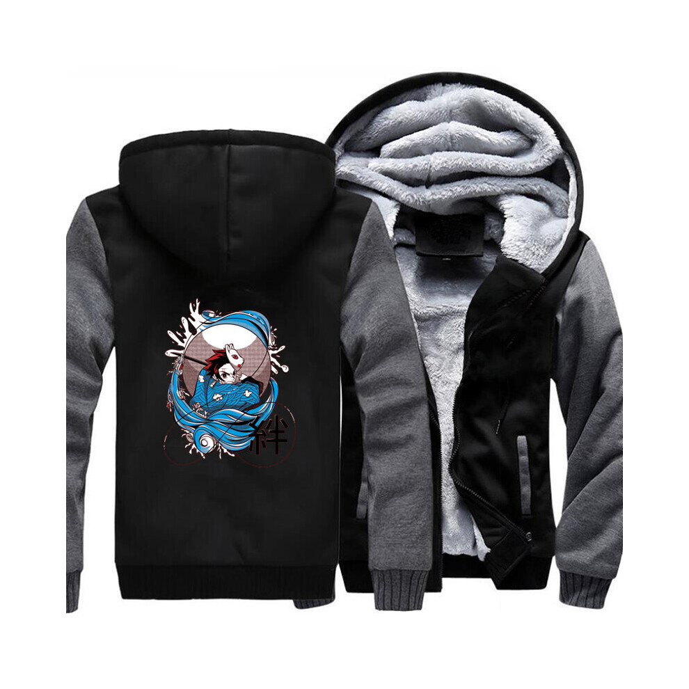 Water Dance Tanjiro Kamado Kimetsu No Yaiba Demon Slayer Winter Jacket Men Hoodies Camo Warm Fleece Thicken Hooded Jackets Coats