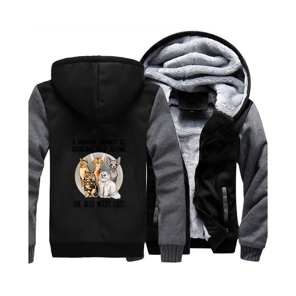 Funny Cat A Cannot Be Quarantined Alone She Also Needs Cats Winter Jacket Men Fleece Thicken Hoodies Camo Hooded Jackets Coats