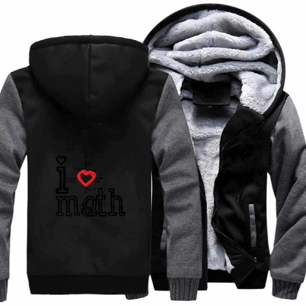 I Love Math Jacket Streetwear Men Winter Thicken Jackets Hooded Camo Hoodies Zip Up Hoodie Warm Fleece Sweatshirt Coats Clothing
