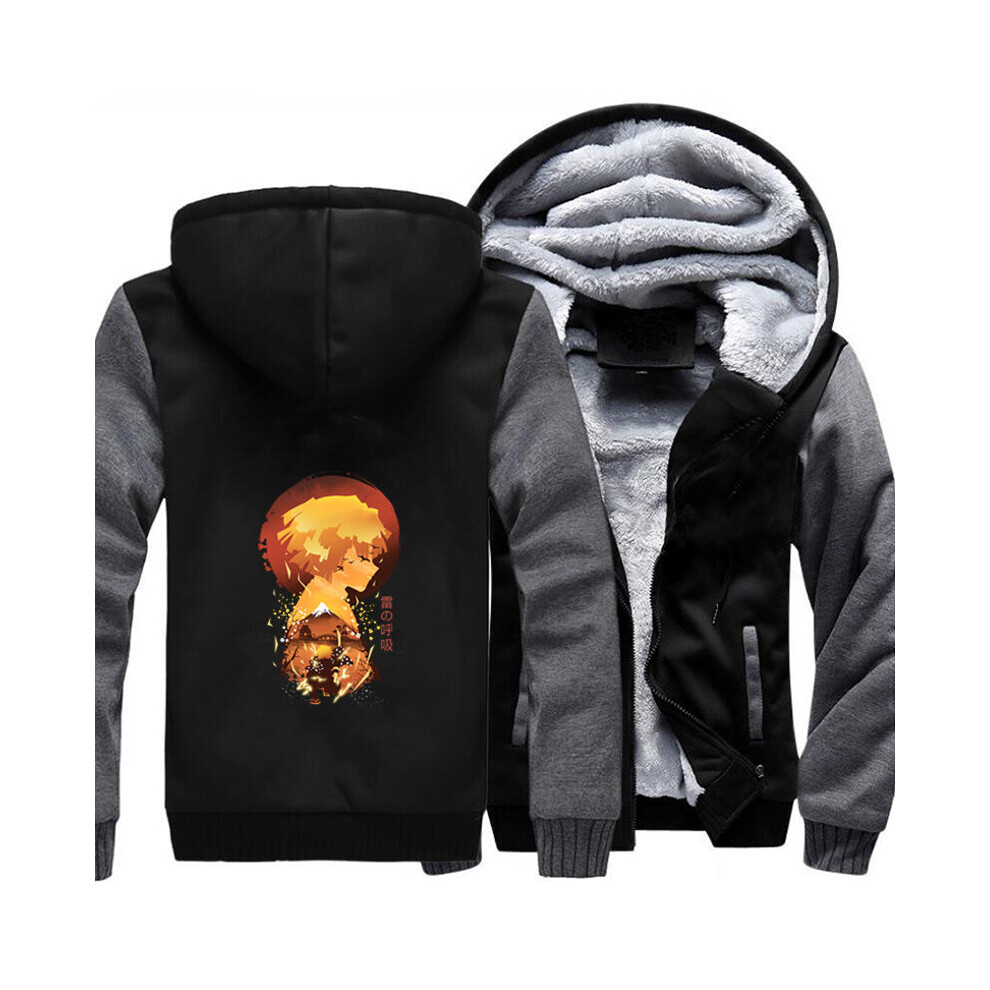 E0190Demon Slayer Kimetsu no Yaiba Japanese Anime Harajuku Winter Jacket For Men Hoodies Camo Warm Fleece Thicken Hooded Jackets