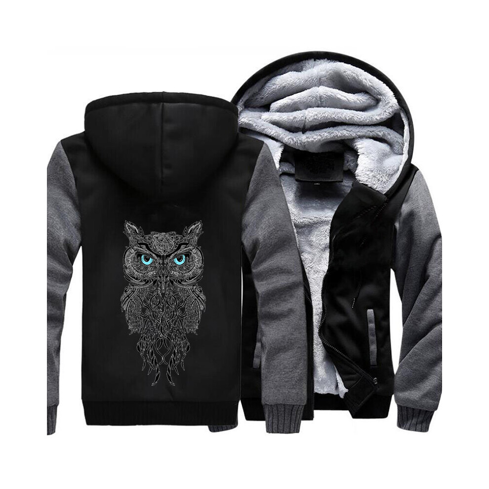 Eagle Owl Animal Jacket Streetwear Men Winter Thicken Jackets Zip Up Hoodie Warm Fleece Hooded Camo Hoodies Sweatshirts Coats
