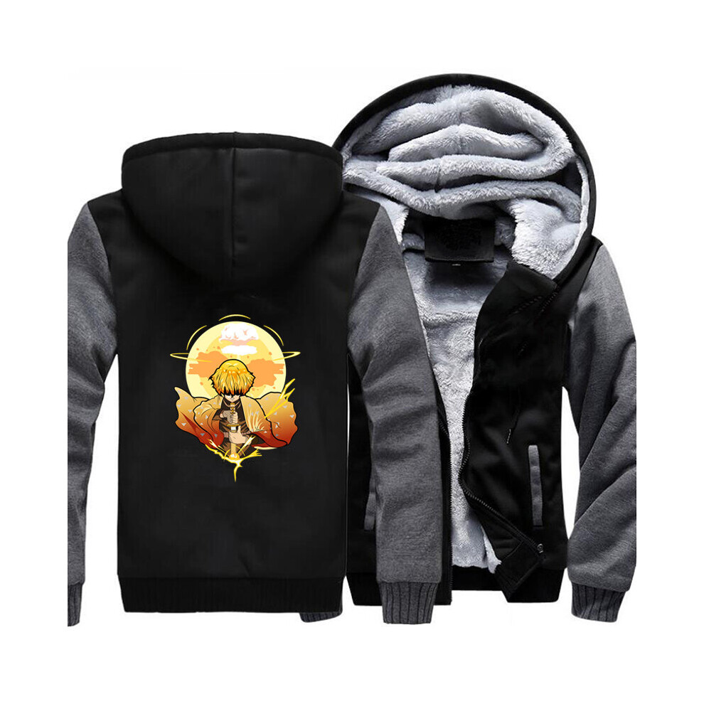 Demon Slayer Kimetsu no Yaiba Japanese Anime Agatsuma Zenitsu Winter Jacket Men Hoodies Camo Warm Fleece Thicken Jackets Coats