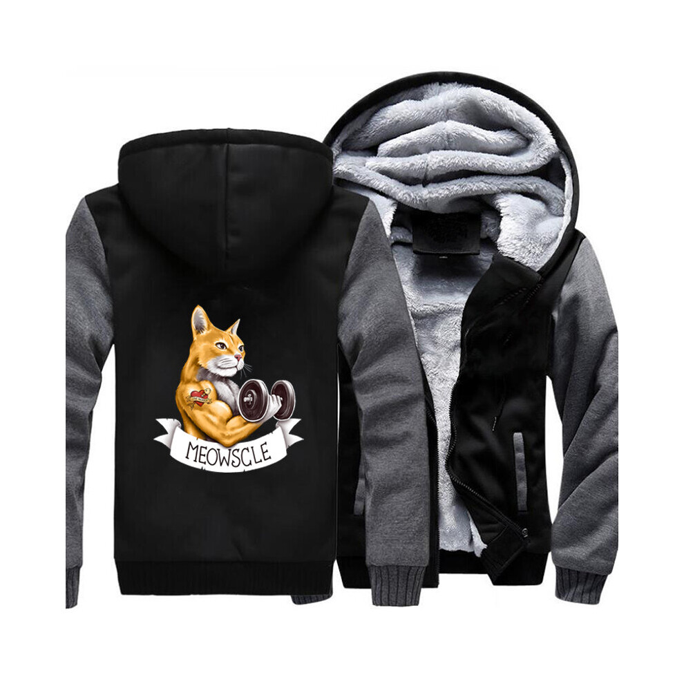 Meowscle Cat Streetwear Men Winter Thicken Jackets Zip Up Hoodie Warm Fleece Hooded Camo Hoodies Sweatshirts Coats Clothing