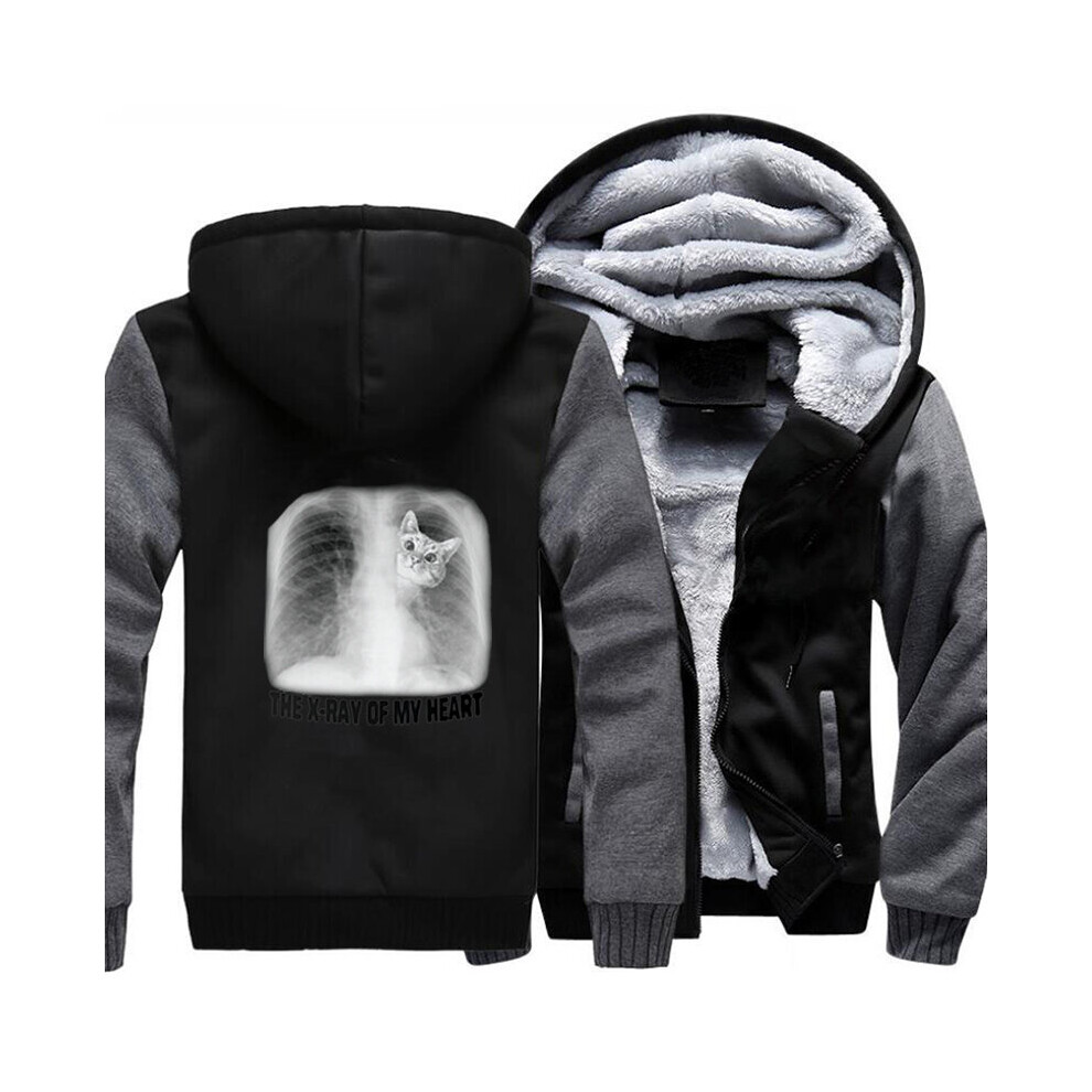 The X-ray Of My Heart Cat Kitten Lover Gift Funny Cats Winter Jacket Men Hoodies Camo Warm Fleece Thicken Hooded Jackets Coats