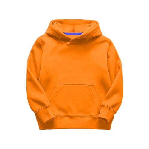 Kids Hoodies Trendy Hip-Hop Sweatshirt with Pocket Boys Girls Hoodie Solid Fleece Long Sleeve Warm Sweatshirts Pullover Hooded JJumper Winter Outfits Clothes (Orange, 7-8 Years)