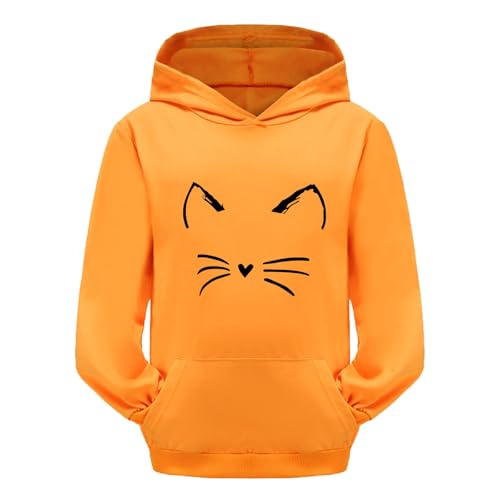 Girls Casual Hoodies Long Sleeve Cat Face Plain Pullover Hoody Hooded Top Autumn Winter Thermal Fleece Sweatshirts with Pockets Children's Tops JJumper Kids Clothing (Orange, 9-10 Years)