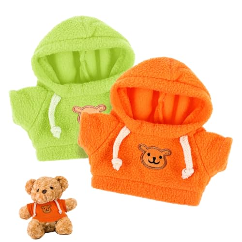 Gogogmee 2pcs Stuffed Bear Clothes for Dolls Reusable Soft Doll Hoodies in Orange Green Easy to Wear Replacement Garments for Small Plush Bears and Comfortable Outfit Accessories