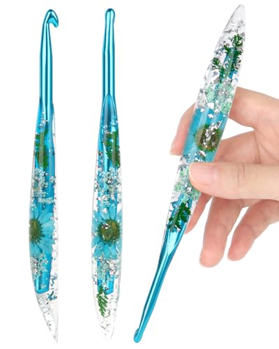 Aeelike 7mm Crochet Hook, Metal Crochet Hooks 7mm with Floral Resin Handle, Ergonomic Crochet Needles for Beginners Adults, Pretty and Interesting Hook Gift for Crochet Lovers(7.0 mm)