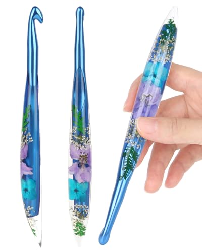 Aeelike 9mm Crochet Hook, Metal Crochet Hooks 9mm with Floral Resin Handle, Ergonomic Crochet Needles for Beginners Adults, Pretty and Interesting Hook Gift for Crochet Lovers(9.0 mm)