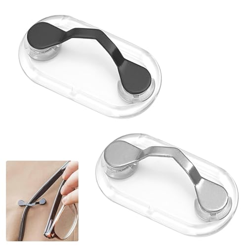 OMCGG 2PCS Magnetic Eyeglasses Holder, Stainless Steel Magnetic Glasses Clips Spectacle Holder for Glasses Sunglasses Reading Glasses ID Card ID Badge Eyewear Hook Earphones for Men Women