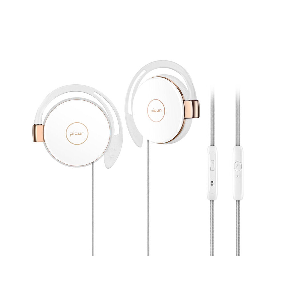 (White&Gold) Stereo Ear Hook Sport Earphones for Smart Phone with Microphone Headset Hi-Fi Running Headphones Volume Control Earpiece