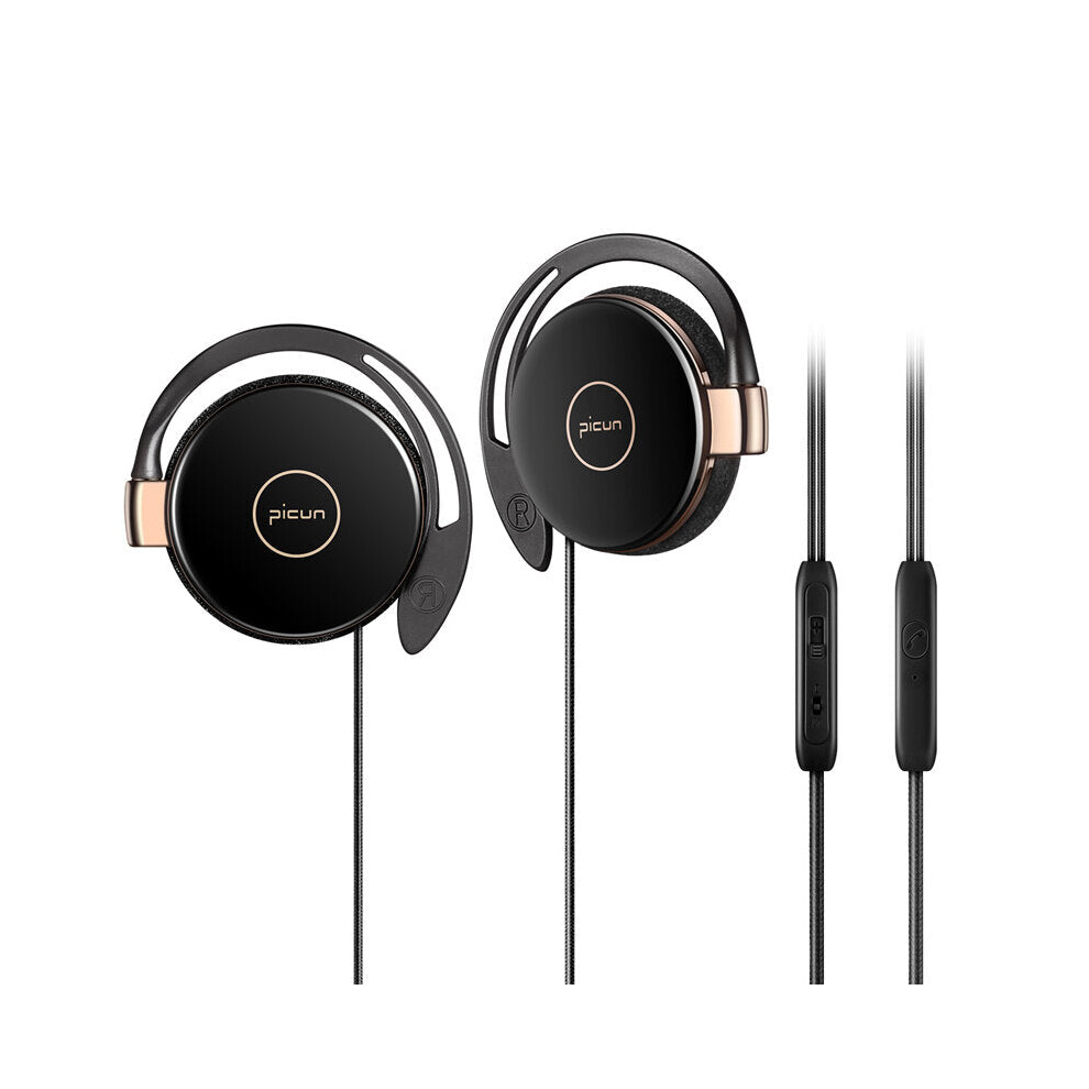(Black&Gold) Stereo Ear Hook Sport Earphones for Smart Phone with Microphone Headset Hi-Fi Running Headphones Volume Control Earpiece