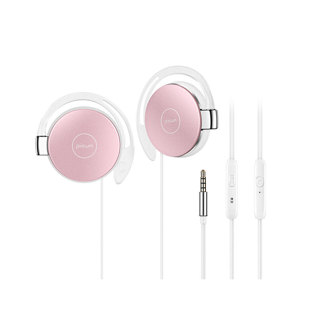 (Pink) Stereo Ear Hook Sport Earphones for Smart Phone with Microphone Headset Hi-Fi Running Headphones Volume Control Earpiece