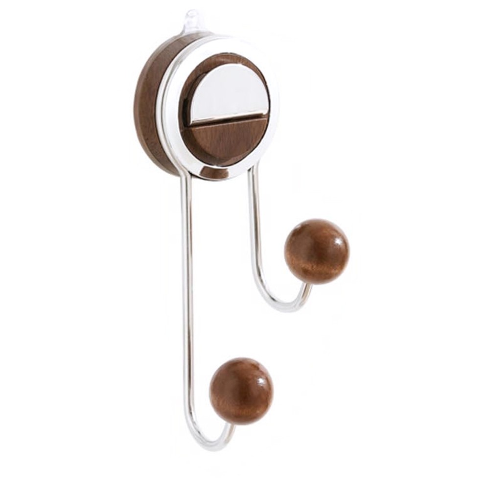 WENKO Turbo-Loc Duo Genova Shine Wall Hook, Decorative Double Stainless Steel Bathroom Hook for Towels or Bathroom Utensils, Fixes No Drilling Required, 3.5" W x 1.75" H x 2.125" D, Glossy
