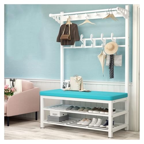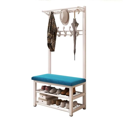 JAVPTAV Hall Tree with Shoe Bench and Storage Shelf nizer 3 in 1 Coat Rack with 10 Hooks Accent Furniture for Entryway Metal Frame Coat Racks(Blue,80X33X172CM)