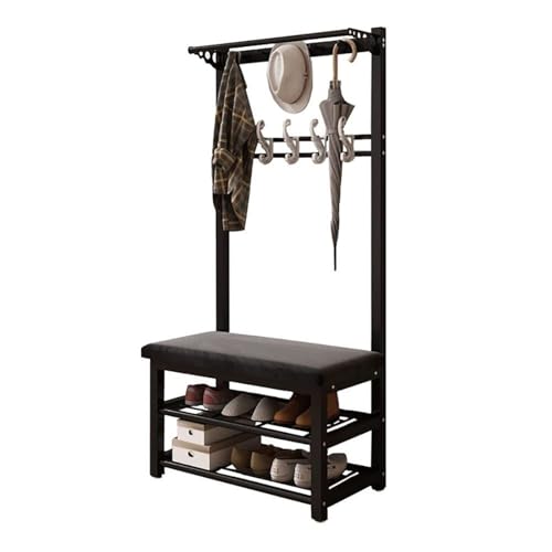 JAVPTAV Coat Rack with Shoe Bench and 14 Hooks Free Standing Metal Hall Tree with Shoe Racks 4 in 1 Design for Entryway Hallway Living Room Bedroom(Black Gray,80cm)