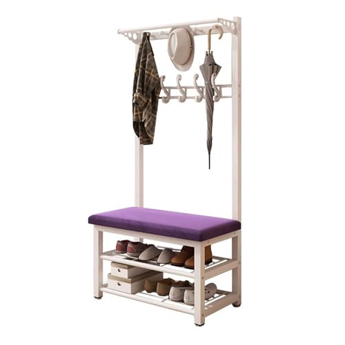 JAVPTAV Hall Tree with Shoe Bench and Storage Shelf nizer 3 in 1 Coat Rack with 10 Hooks Accent Furniture for Entryway Metal Frame Coat Racks(Purple,80X33X172CM)