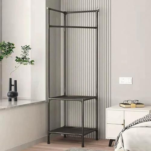 Kcolic Metal Corner Coat Rack - Coat Rack - Removable Hooks and Storage Racks for Clothes, Hats, Entryway or Bedroom Storage Black,Three-layer