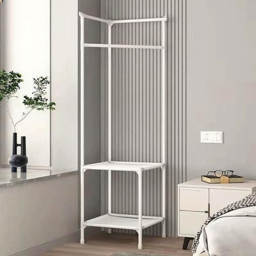 Kcolic Metal Corner Coat Rack - Coat Rack - Removable Hooks and Storage Racks for Clothes, Hats, Entryway or Bedroom Storage White,Two-layer