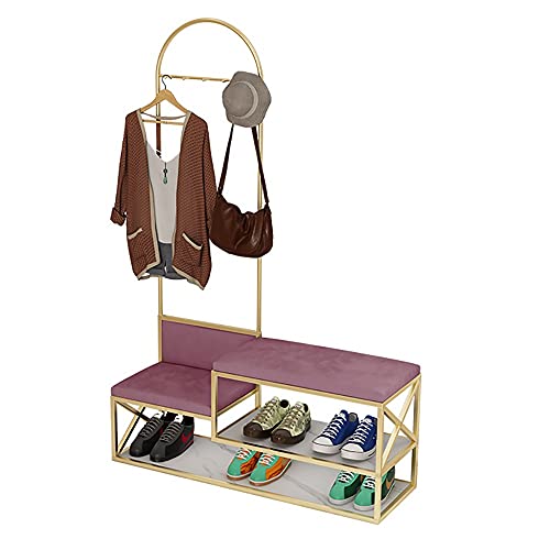 Industrial Coat Rack Stand with Non slip Foot Pad 16 Hooks 2 Shoe Racks and 1 Bench Perfect for Bedroom Hallway Living Room(Pink,80 * 33 * 172cm)