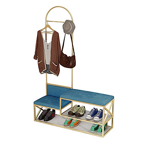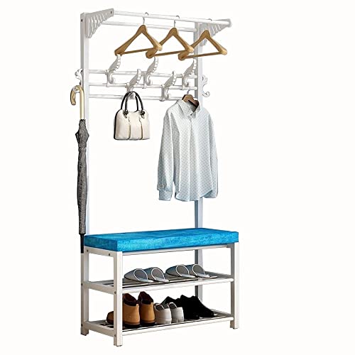 Industrial Coat Rack Stand with Non slip Foot Pad 16 Hooks 2 Shoe Racks and 1 Bench Perfect for Bedroom Hallway Living Room(Blue,60 * 33 * 172cm)