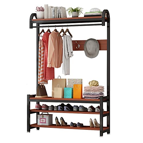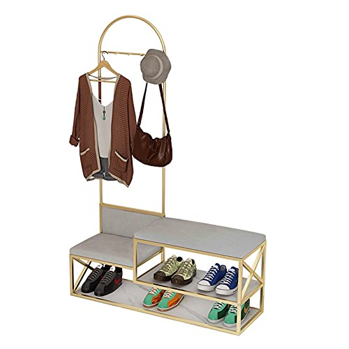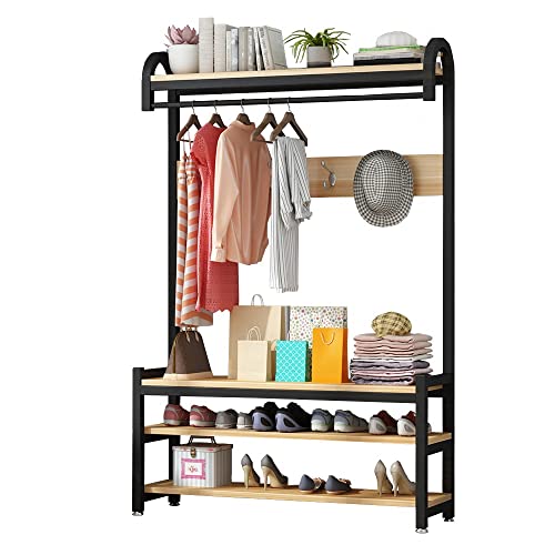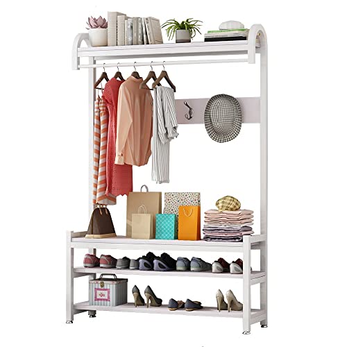 SLGGPJBU Exquisite Clothes Rail Rack Coat Rack Shoe Bench Entryway Storage Shelf Standing Coat Racks With 6 Hooks 2 Metal Hanging Bars And 1 Storage Basket