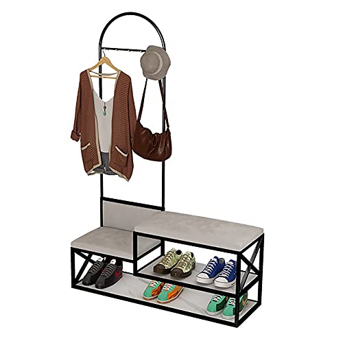 SQMGFA Coat Rack with Shoe bench,3-in-1 Entryway with Storage Bench and Coat Racks, Entryway Storage Shelf Organizer with 5 Hooks, Accent Furniture with Metal Frame 80x33x175cm (C 100x33x175cm)