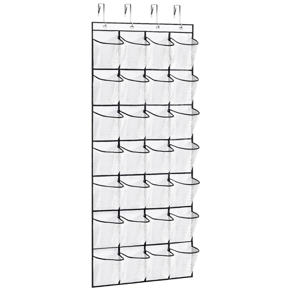 Space-Saving Over The Door Shoe Organizer with 28 Mesh Large Pockets Hanging Storage Rack, Adjustable Hooks for Thick Doors, Breathable Eco-Friendly M