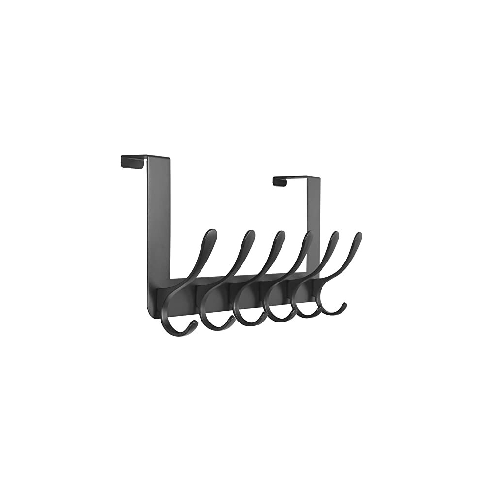 HuaJiao Over Door Hooks, 6 Hooks Over Doors Hanger 1 Pack Heavy Duty Coat Hooks with Rust Resistant Door Hook Coat Rack for Towels Jackets Purses Bags Clothes Robes (Black)