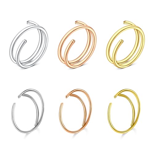 CIZME 6pcs Stainless Steel Double Nose Ring Bicyclic for Single Piercing 20G 8mm Silver Rose Gold Golden Spiral Nose Hoop Nostril Piercing Jwewllery